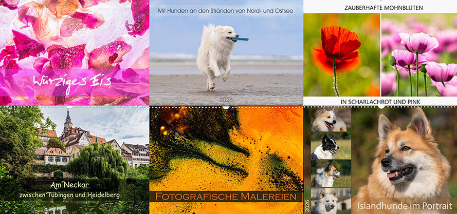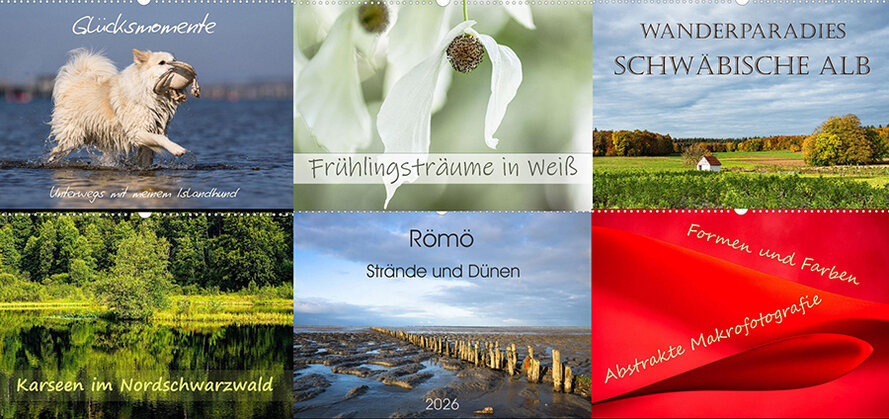 Alle meine Kalender sind bei Calvendo erschienen und können in verschiedenen Formaten nur über den Onlinehandel bezogen werden. Sie werden bei Bedarf produziert, so dass Lagerung, Überproduktion und somit Abfall vermieden werden. Desweiteren ermöglicht die Produktion in Deutschland kurze Transportwege.