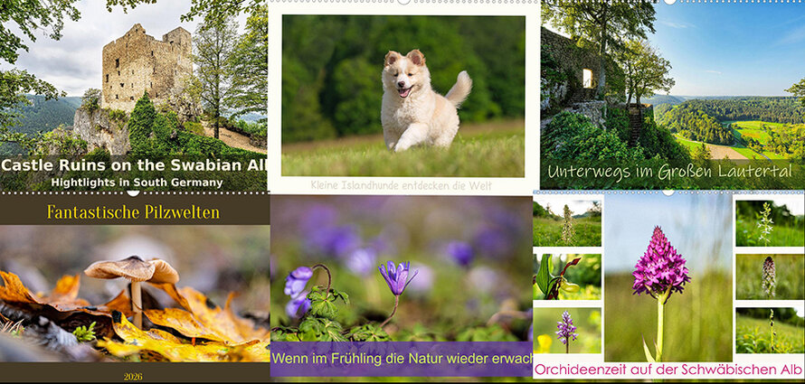 Alle meine Kalender sind bei Calvendo erschienen und können in verschiedenen Formaten nur über den Onlinehandel bezogen werden. Sie werden bei Bedarf produziert, so dass Lagerung, Überproduktion und somit Abfall vermieden werden. Desweiteren ermöglicht die Produktion in Deutschland kurze Transportwege.